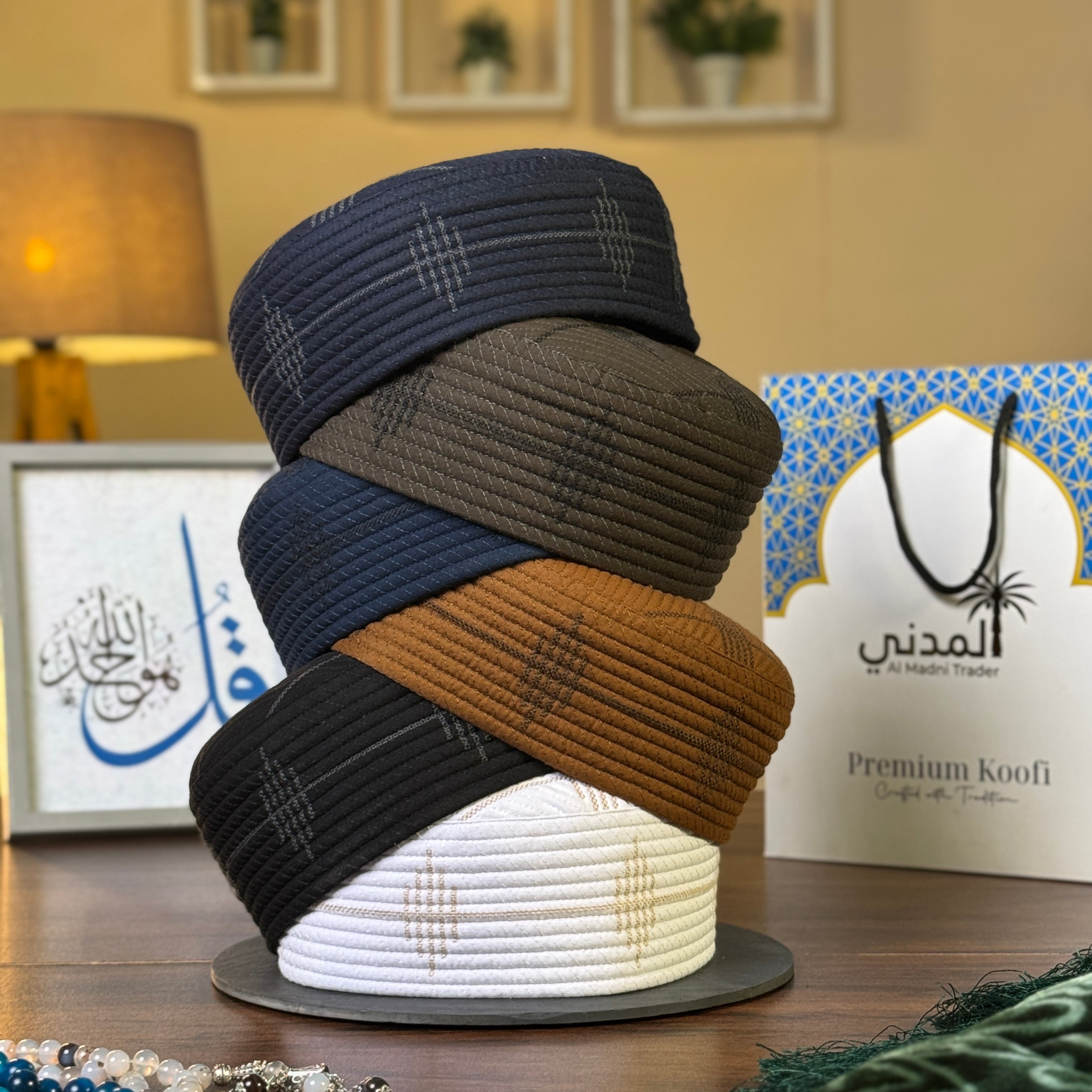 Experience unparalleled elegance and comfort with our Premium Koofi. Handcrafted to perfection, this koofi exemplifies traditional artistry and modern sophistication. Made from high-quality, breathable materials, it ensures a perfect fit and all-day comfort. Whether for daily prayers, special occasions, or as a distinguished accessory, our Premium Koofi enhances your spiritual attire with timeless style.